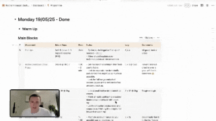 You’ll be in a rhythm of executing your personalised programme, sending one or more videos for technique review, providing feedback to me via your Weekly Check-in and receiving feedback via your Check-in Review Video